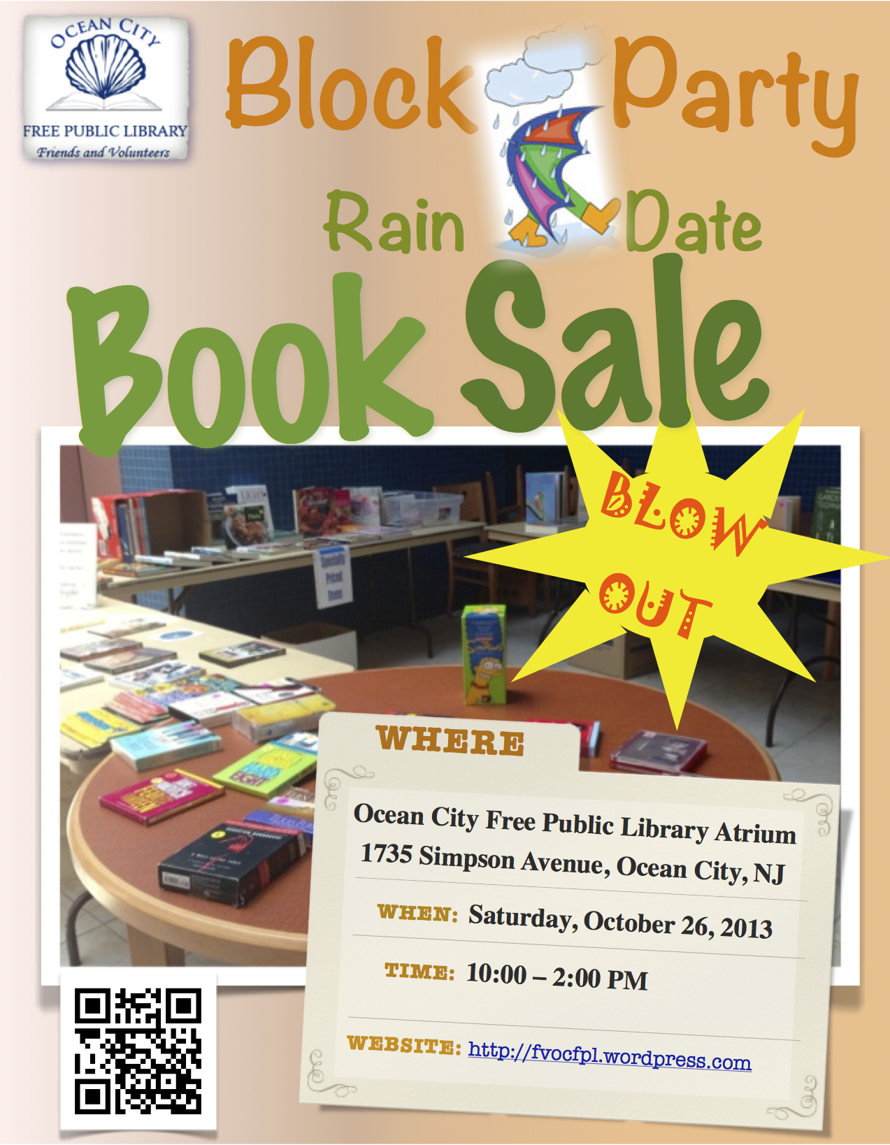October 19, 2013 Block Party Rain Date Book Sale! Leave a comment To download a copy of this flyer, click: BookSaleRainDate Share this: Click to share on X (Opens in new window) X Click to share on Pinterest (Opens in new window) Pinterest Click to print (Opens in new window) Print Click to email a link to a friend (Opens in new window) Email Click to share on Facebook (Opens in new window) Facebook Like Loading... Related Posted by Ladies of Charity SWF in BOOK SALE, Post Tagged: Book Sale