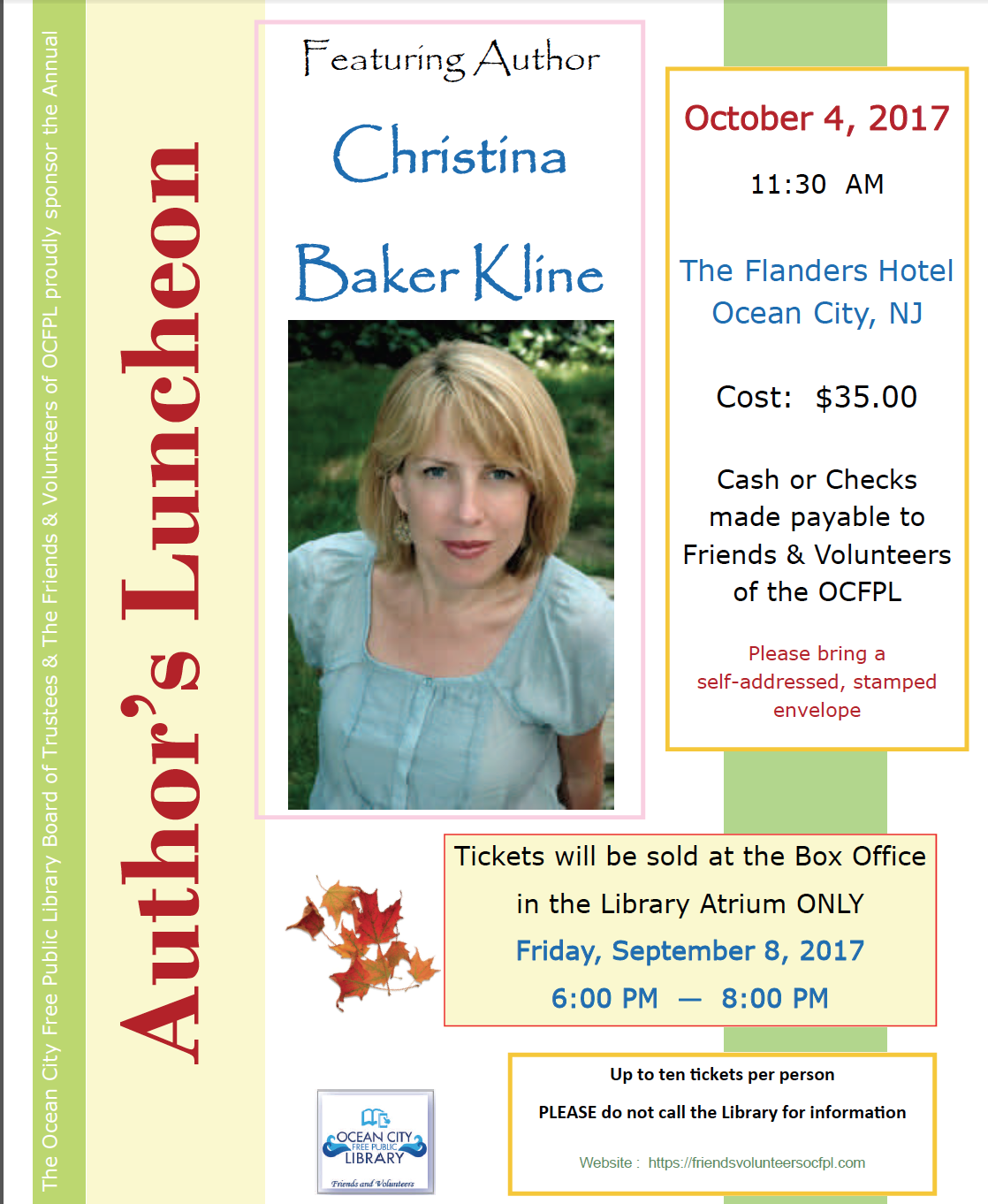August 21, 2017 AUTHOR LUNCHEON—OCTOBER 4, 2017—TICKET SALES! Leave a comment Share this: Click to share on X (Opens in new window) X Click to share on Pinterest (Opens in new window) Pinterest Click to print (Opens in new window) Print Click to email a link to a friend (Opens in new window) Email Click to share on Facebook (Opens in new window) Facebook Like Loading... Related Posted by Ladies of Charity SWF in Author Luncheon Tagged: Author Luncheon