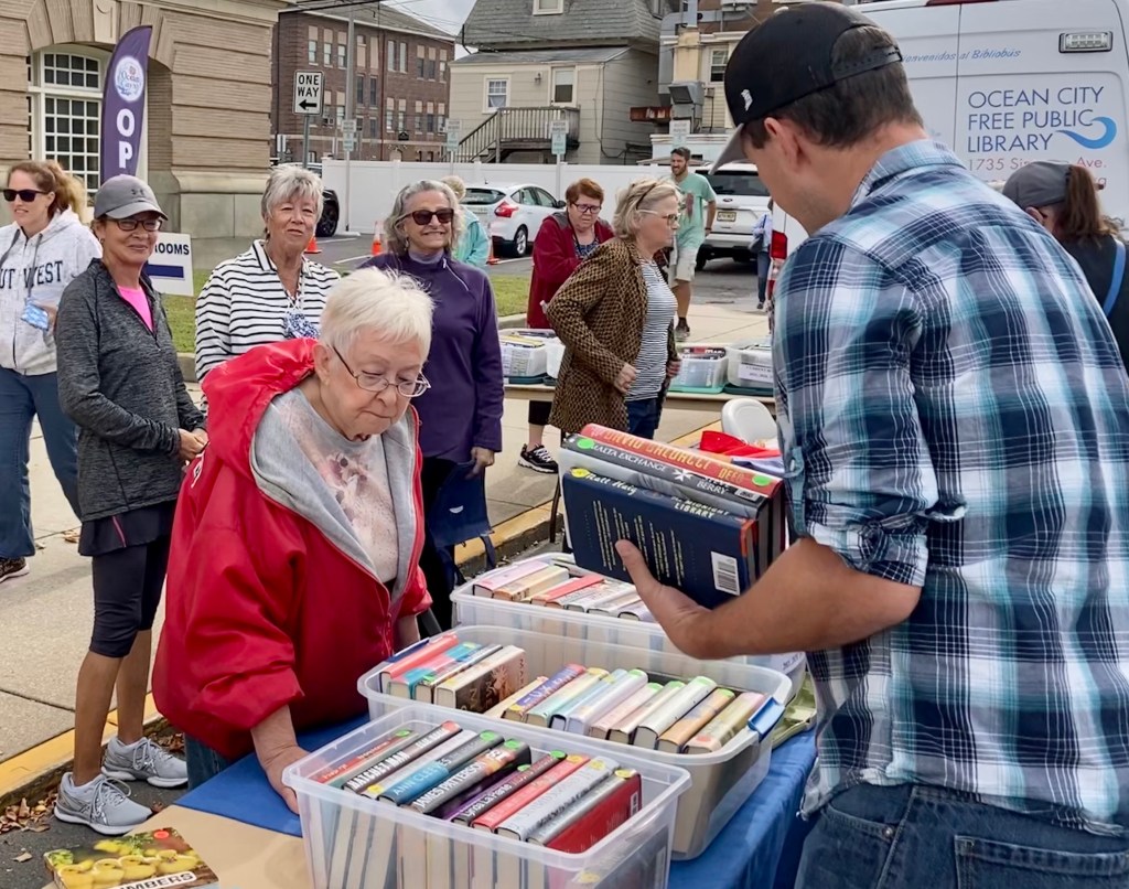 F & V members Annette LoPresti, Pam Hepner, Joy Fleckser, Jeanne Pless and Evie Bachich oversee the offerings at the Fall Block Party. Books were sold, information was distributed and fun was in large supply to the visitors and community members who stopped by the library’s booth.