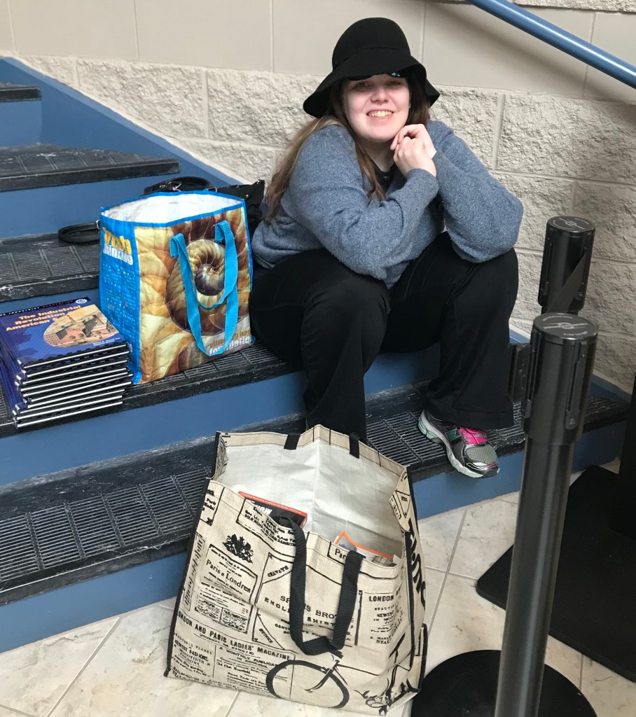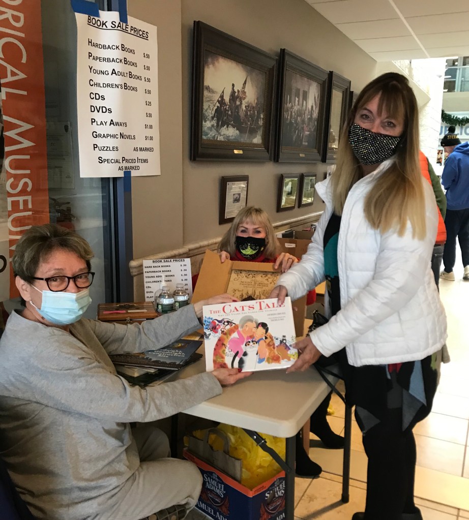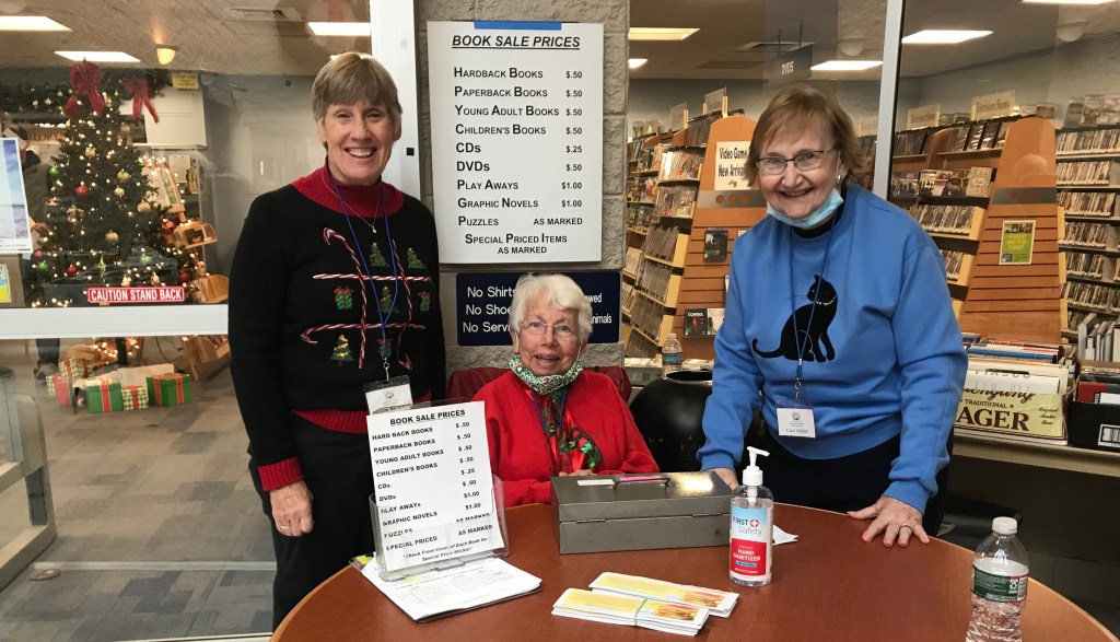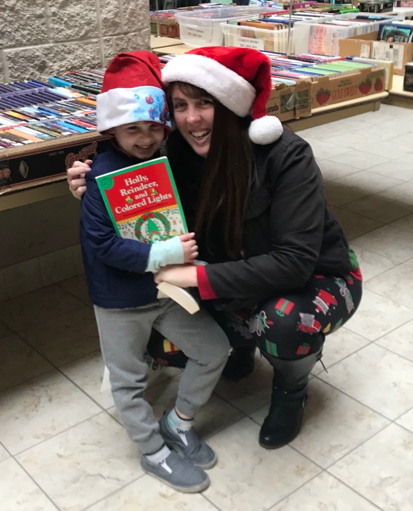 Debbie Moreland, Angel Smith and Carol DeMill are ready to sell materials at the holiday book sale.Jessica and Rex Melville, from Linwood, find the perfect book to celebrate the holiday spirit.Alice Rinkavage and Stephanie Rankin help a customer with a purchase.Taking a short rest with some treasures.One of the many special books sixth grader, Chris Zerbas, found at the book sale.