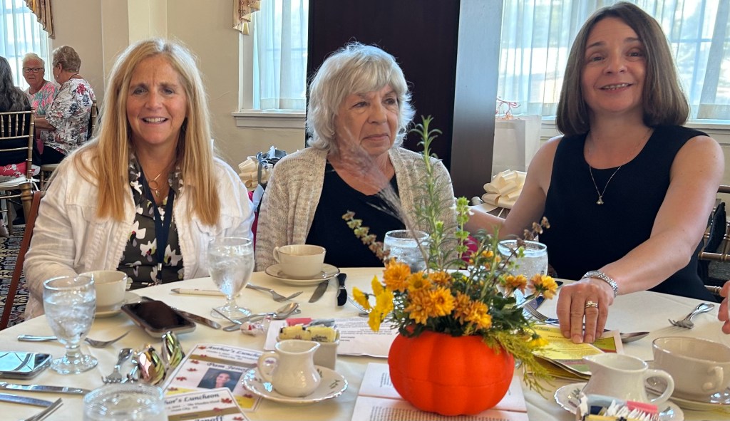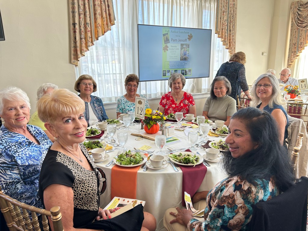 Best selling author, Pam Jenoff, was the keynote speaker at the F & V’s annual fall luncheon. She spoke in a conversational style with wit, humor, and honesty, relaying her personal stories and her writing processes while enchanting those in attendance.