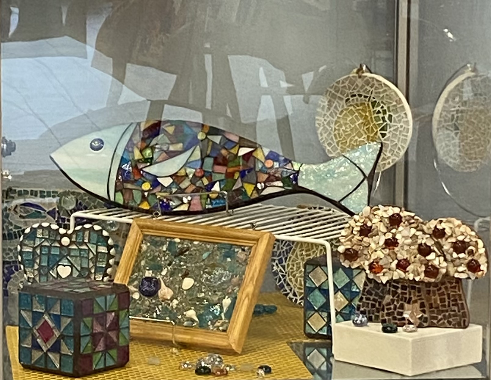 May 7, 2024 Display Case Mosaics Leave a comment The display case is featuring works on loan from Monica Jones, Dana Eiselen, Lucy Eiselen, Allie Eiselen, Mary Beth Alvare, Anne Cancelmo, Donna Prince and Richard Prince. Their artistic creations will be displayed during the month of May. Share this: Click to share on X (Opens in new window) X Click to share on Pinterest (Opens in new window) Pinterest Click to print (Opens in new window) Print Click to email a link to a friend (Opens in new window) Email Click to share on Facebook (Opens in new window) Facebook Like Loading... Related Posted by fvwebcreate in Post