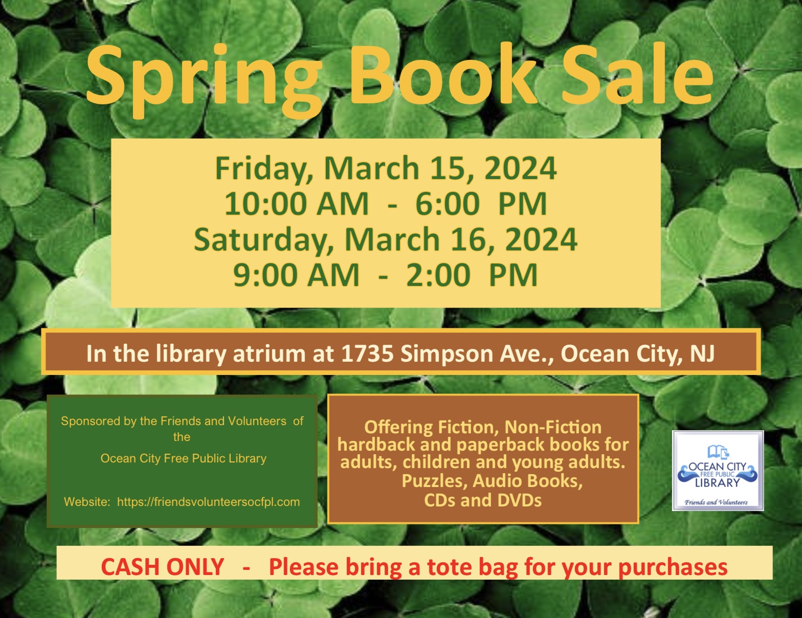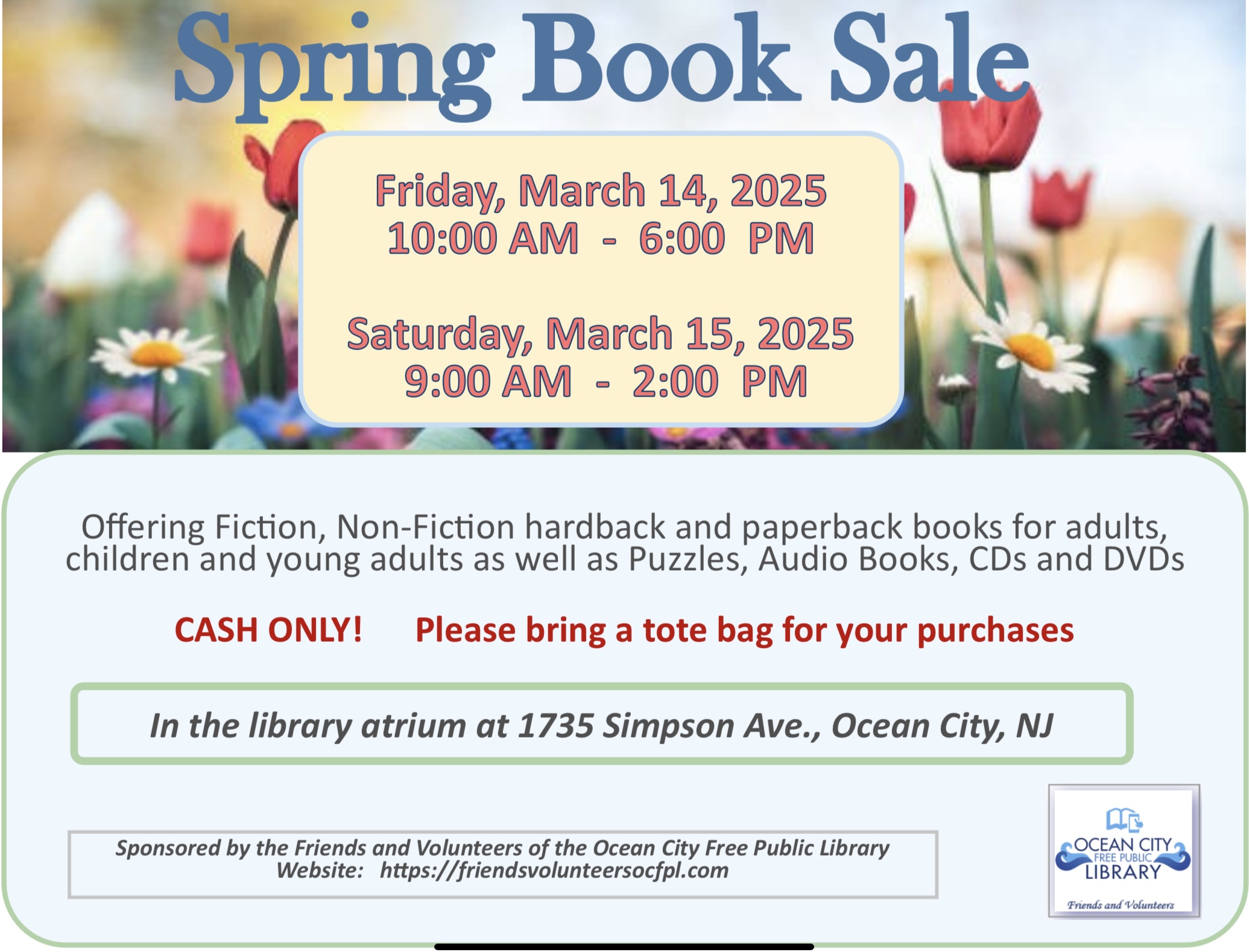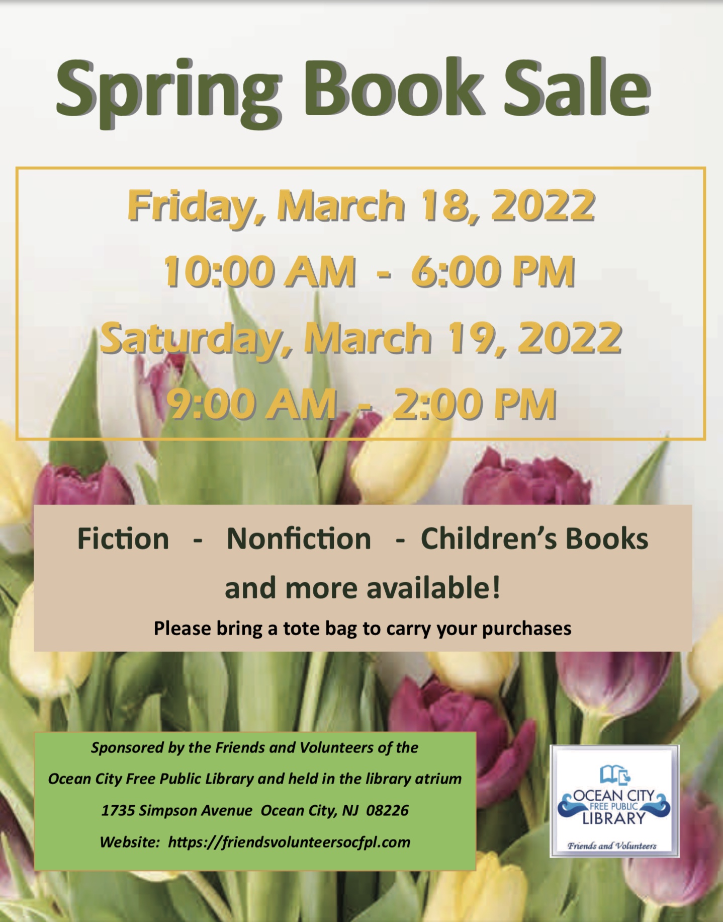 The book sale scheduled for March 27 & 28, 2020 has been cancelled.