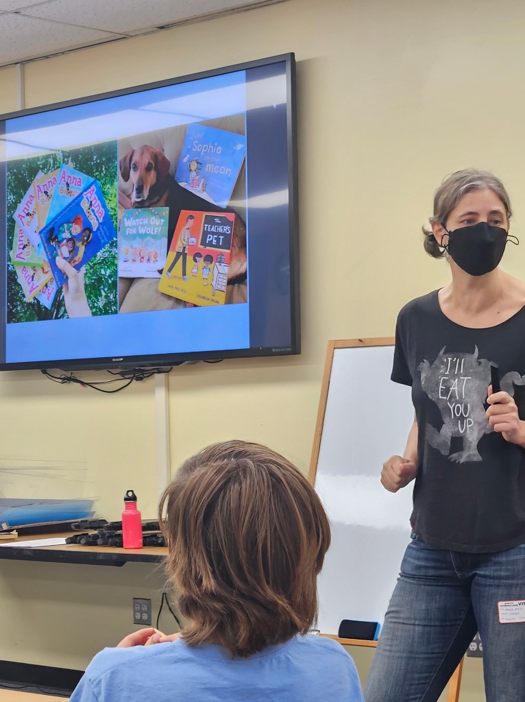 Anica Rissi engaged 5th and 7th graders at the Intermediate School in a “spooky” writing workshop on October 6th and 7th. The annual event is sponsored by the F & V. Anica is the published author of books for children of all ages, including teens. She involves the students by using their ideas and encouraging those who would like to share their writing with the group. When the workshop’s time came to an end, the students kept writing! That’s how you know the workshop was a success! We are looking forward to next fall.