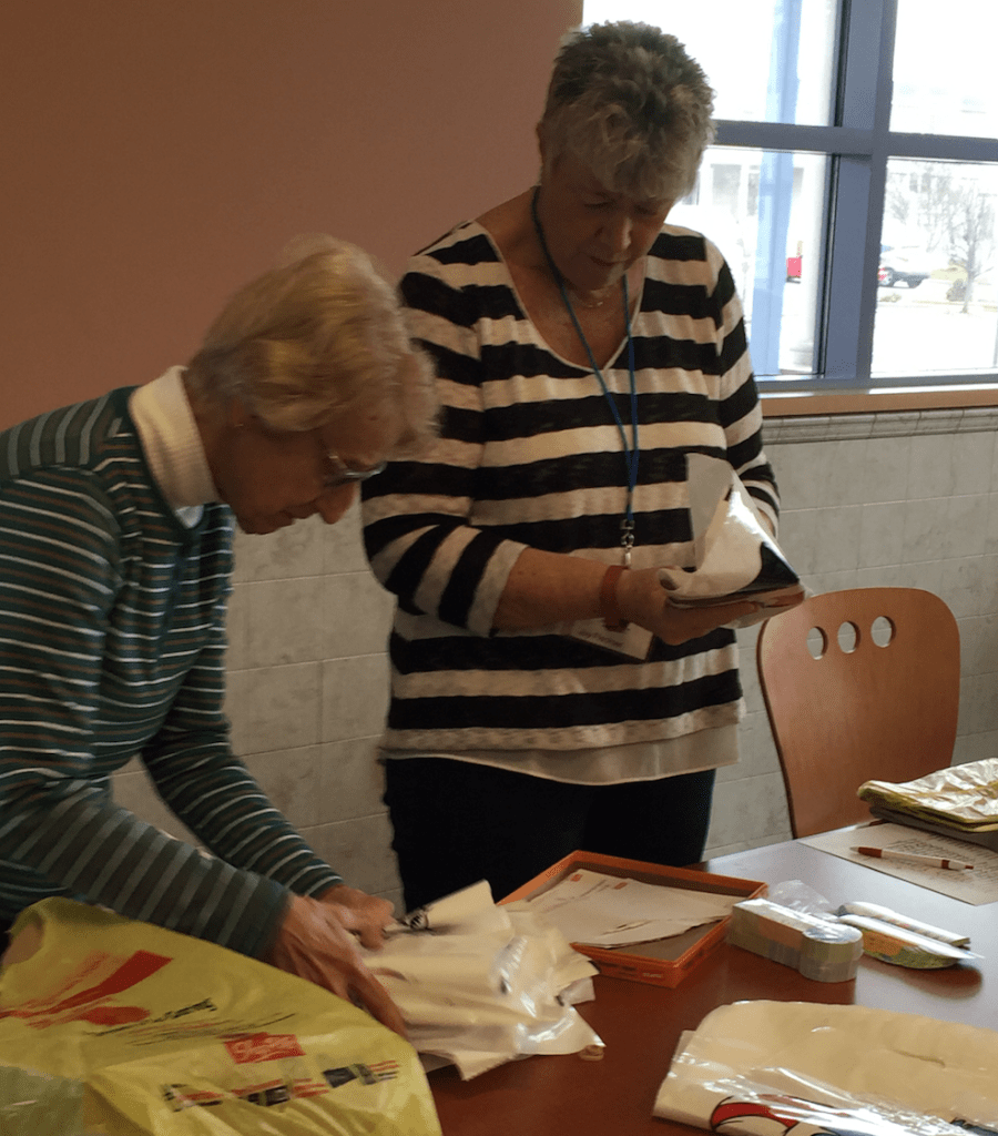 - Gathering the bookmarks and book bags donated by the OCFPL