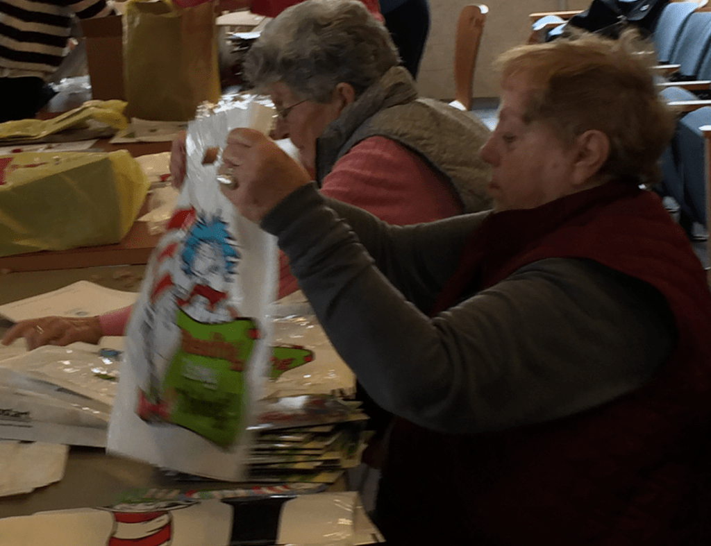 The Friends and Volunteers of the Ocean City Free Public Library meet to lovingly stuff bags with books for each student and teacher in hopes that all students may develop a love of reading for pleasure and learning!